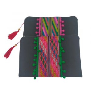 3. Kachin Cotton Large Zippered Pouch/Clutch - Black (multiple design options)