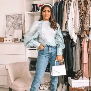 11. Lantern Sleeve Dotted Swiss Blouses